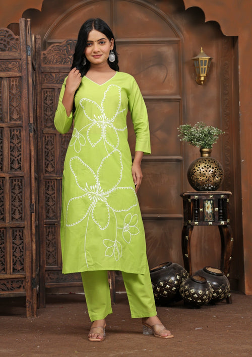 Lime Bloom Floral Kurta Pant Set for Women | Cotton Ethnic Wear